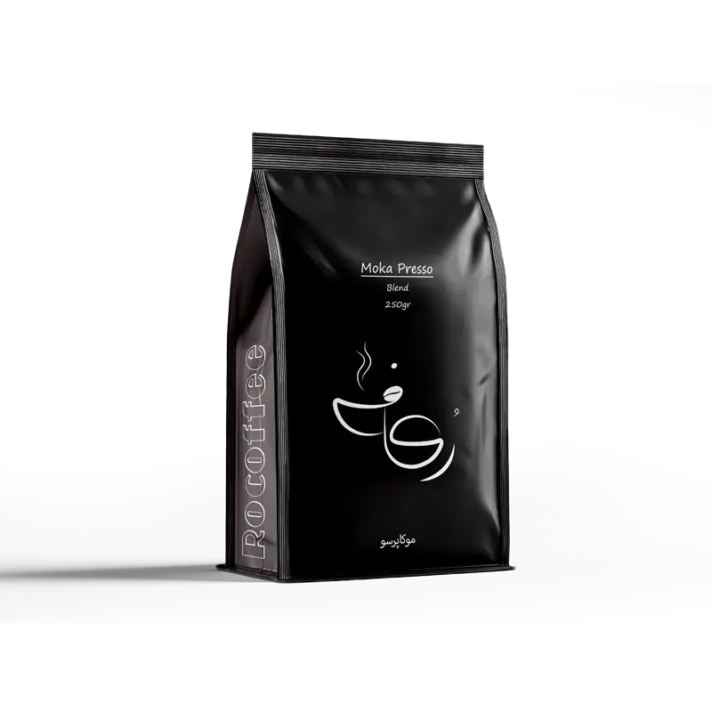 • قهوه تازه ترکیبی موکا پرسو، رست ملایم، دانه و پودر شده